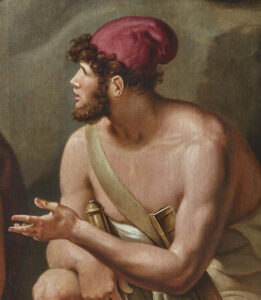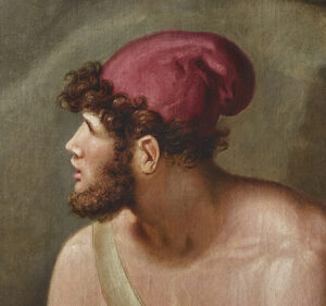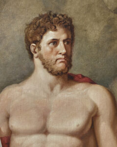 Tischbein started this painting in the 1790s when he was still in Italy and he took it, along with many other examples of his own work and as much of his extensive collection of Old Masters that he could take, when he was forced to flee Naples in 1799 during the French occupation. The artist dedicated much time to Homeric themes, publishing his “Homer nach Antiken gezeichnet” (Homer Drawn from the Antique) in 1801 and executing a series of large-scale paintings for the Duke of Oldenberg, for whom he served as court painter and inspector of collections from 1808. When he eventually finished Ajax and Ulysses, Napoleon’s occupation of the Duchy forced the Duke and his family to flee and so the painting did not join the others in the Duke’s palace in Eutin, but remained unclaimed in Tischbein’s studio, until in 1813 he sold it in order to support his wife and six young children, to a Belgian baron, in whose residence it has remained to this day.