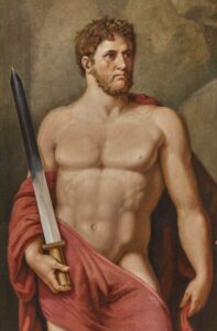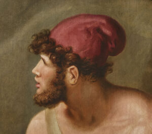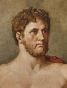 Tischbein started this painting in the 1790s when he was still in Italy and he took it, along with many other examples of his own work and as much of his extensive collection of Old Masters that he could take, when he was forced to flee Naples in 1799 during the French occupation. The artist dedicated much time to Homeric themes, publishing his “Homer nach Antiken gezeichnet” (Homer Drawn from the Antique) in 1801 and executing a series of large-scale paintings for the Duke of Oldenberg, for whom he served as court painter and inspector of collections from 1808. When he eventually finished Ajax and Ulysses, Napoleon’s occupation of the Duchy forced the Duke and his family to flee and so the painting did not join the others in the Duke’s palace in Eutin, but  remained unclaimed in Tischbein’s studio, until in 1813 he sold it in order to support his wife and six young children, to a Belgian baron, in whose residence it has remained to this day.