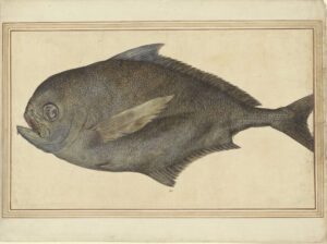 When compared with other illustrations, this Brama Brama stands out for its incredible realism and quality. The scales are beautifully rendered, the fins almost feathery and the eye is shown exactly as it is when a mesopelagic (deep-water) fish is out of water. No detail was missed, including the little protrusions from the lower jaw, believed to be the first documented case of fish parasitism.