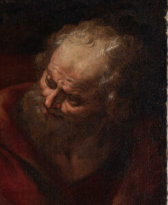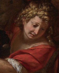 This painting was executed in circa 1620 in the Milan of Cardinal Federico Borromeo. In this cultivated environment Giulio Cesare Procaccini was considered the most refined and “international” artist, and the “Holy Family with the Infant Saint John” represents the pinnacle of his mature period, in which sculptural monumentality, emotional intensity and pictorial brilliance blend masterfully. This painting displays a highly elegant language that blends references to Correggio and Parmigianino with those of Rubens, whom Procaccini had admired and studied during his long stays in Genoa.